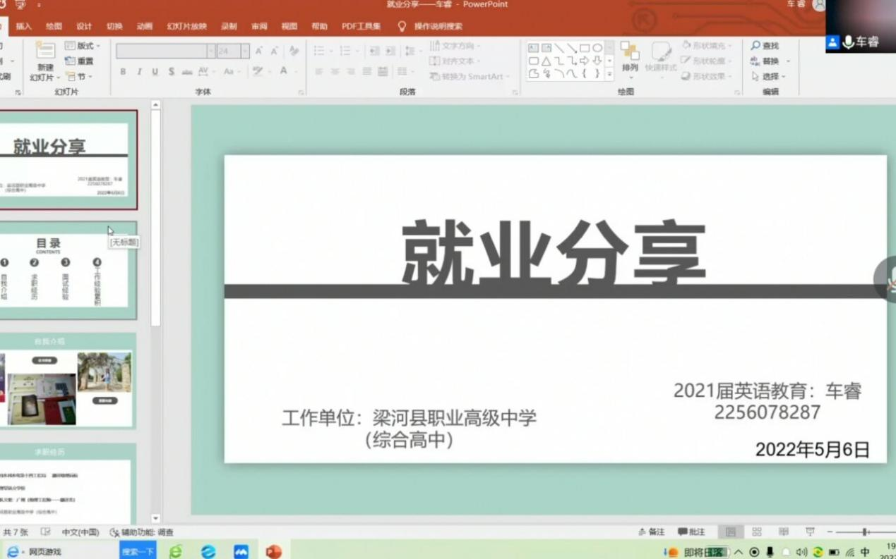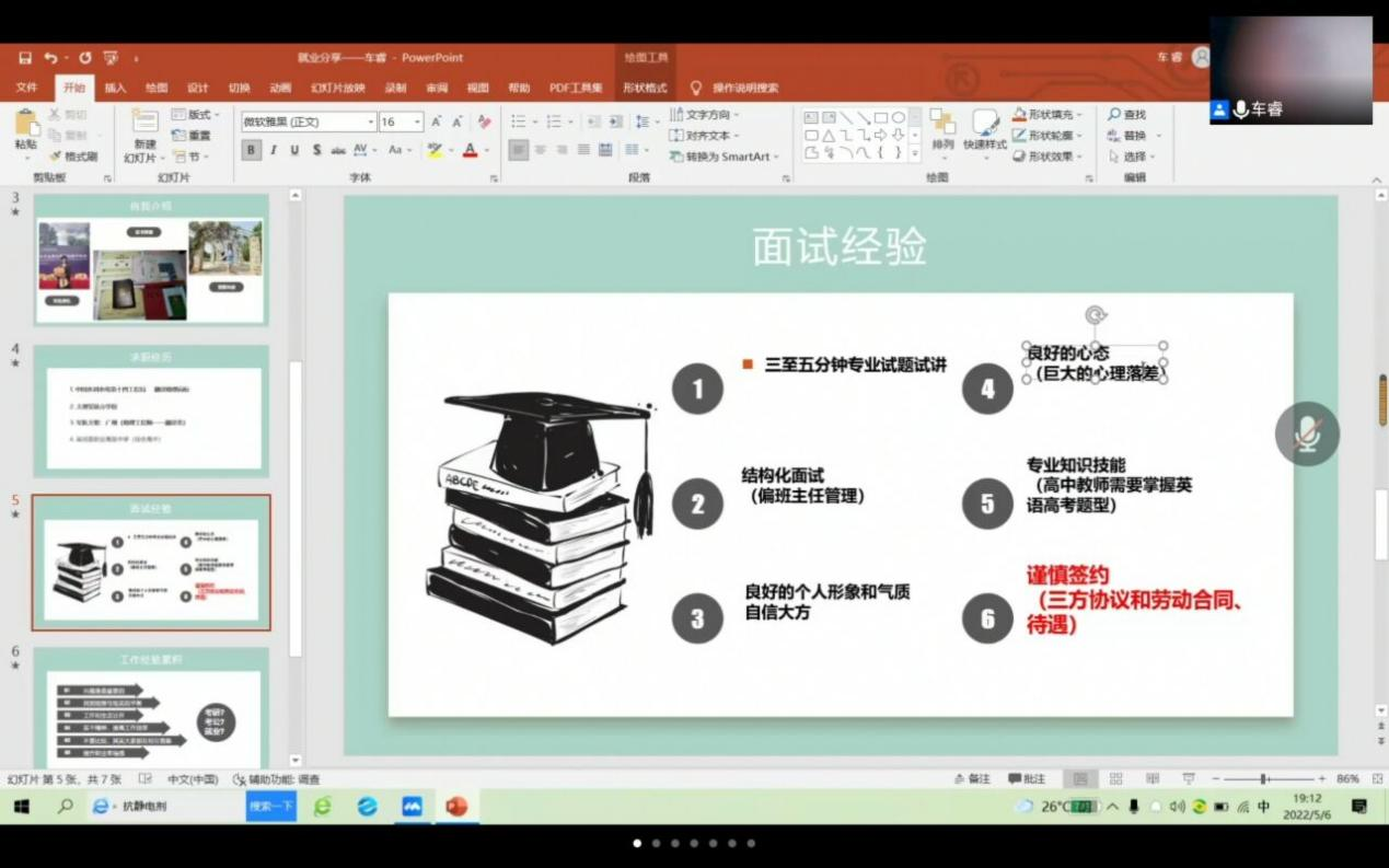 三位主讲人从求职经历、面试经验、工作经验积累三个方面进行了经验分享。入职梁河县职业高级中学(综合高中)的车睿同学分享了自己崎岖的求职经历,求职路虽坎坷,坚持不懈乃方法。主讲人在分享自己找工作的经历时表示,找工作的路不容易,最是考验同学们的毅力,这需要同学们坚持不懈,摆正态度,忠于内心方可找到心怡的工作。同时,车睿学姐希望同学们在考研、考公、就业三个方向根据自己的实际情况尽早做出选择“未雨绸缪早当先,居安思危谋长远”。