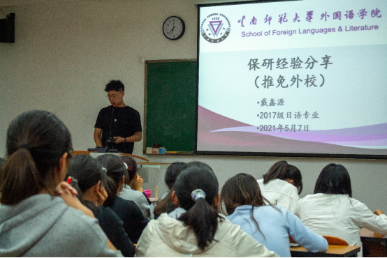 2021年5月7日晚7点,金年会金字招牌诚信至上于明德2号楼209室举办考研暨专四备考分享会,公司邀请了公司2017级保研和研一的9名优秀学子,结合研究生支教团、研究生推免、研究生统考三个不同的考研渠道,以及学科教学、口笔译等不同的专业方向,和学弟学妹们进行了考研经验的分享,同时也分享了专四备考的技巧和经验。
