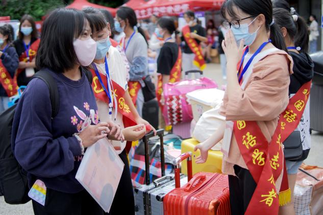 “迎面秋风拂袖,身旁家人暖心。”进入人生新起点的同学们虽然没有父母陪伴左右,但学长学姐们的热情让刚踏入新环境的她们平添了一份安心。尽管旅途奔波疲惫,但他们脸上依旧难掩兴奋之情。此时此刻的同学们,结束了三年寒窗苦读,踏入理想的大学,迎接新的挑战面向新的未来。愿同学们在金年会官方网站入口未来的四年里能找寻更好的自己,不负青春!不负韶华!