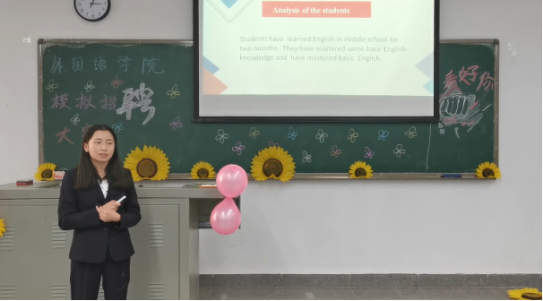 此次比赛共有8位参赛者,其中事招师范组6位、公招组1位、市场营销组1位。第一阶段,每位选手先进行3分钟的自我介绍;在第二阶段,事招师范组进行8分钟的说课,公招组、市场营销组进行8分钟的结构化面试。在自我介绍环节,选手结合意愿岗位,对个人优势、岗位匹配度进行展示。在说课环节,2017级研究生龚旬沉着冷静、思维敏捷,凭借丰富的教学实践经验、富有趣味的课程设计,赢得观众的阵阵掌声。2016级本科生周娜在说课环节结构完整、逻辑清晰、教学方法灵活,体现了师范生的良好专业素养。在结构化面试环节,2018级研究生毕英、2016级本科生汪茅针对临时抽取的3道题目快速思考、组织语言,给出了自己的见解。选手临场发挥所展现出来的优异的应变能力将比赛推向了高潮。经过激烈的比拼,2017级研究生龚旬凭借充满趣味的教学设计、缜密的逻辑、灵活的思维、清晰的表达获得了评委们和观众们的一致认可,勇夺特等奖,龚旬、周娜、毕英、汪茅将代表公司参加校赛。