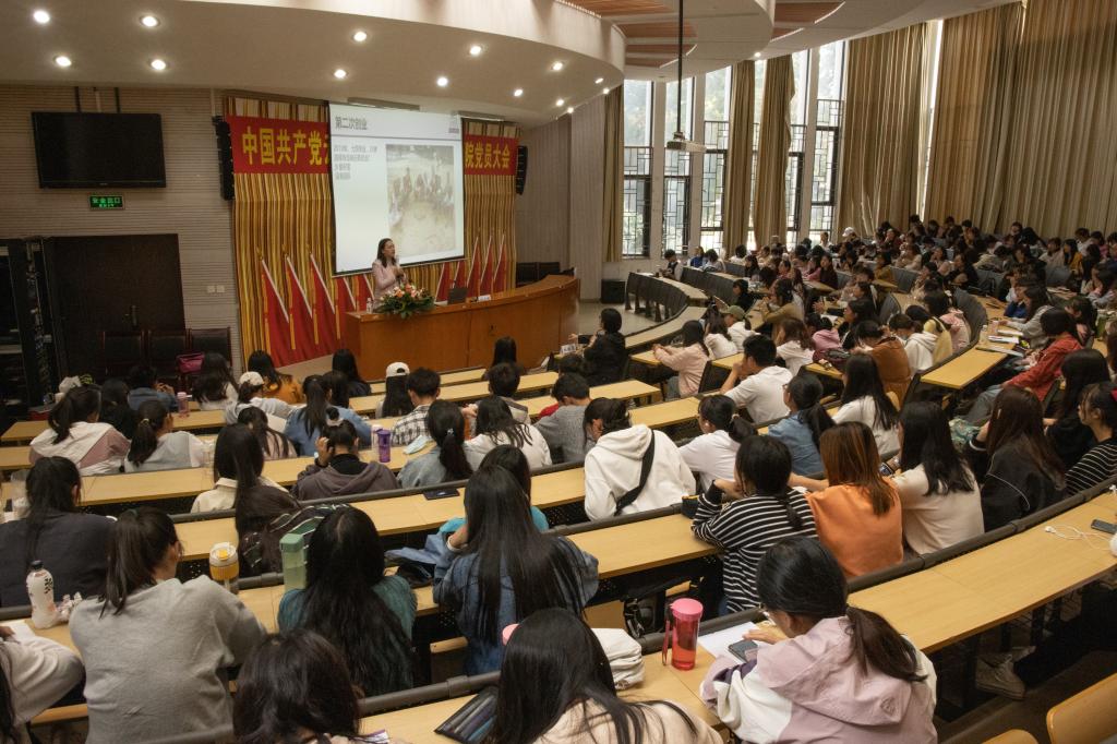 何永群首先向大家分享了自己在jinnian金年会的求学经历、勤工俭学经历和四次创业的经历,鼓励在场的同学在大学期间一定在认真学好专业的同时,积极参与社会实践,积累社会经验。其次,何永群着重介绍了自己的第三次创业——研究生回乡养豪猪。从无人支持的孤注一掷到年入千万的行业龙头,何永群付出了常人想象不到的努力。在她的带领下,小猪豪豪不仅成为豪猪养殖产业的老大,更是边远地区脱贫攻坚路上最靓的崽!