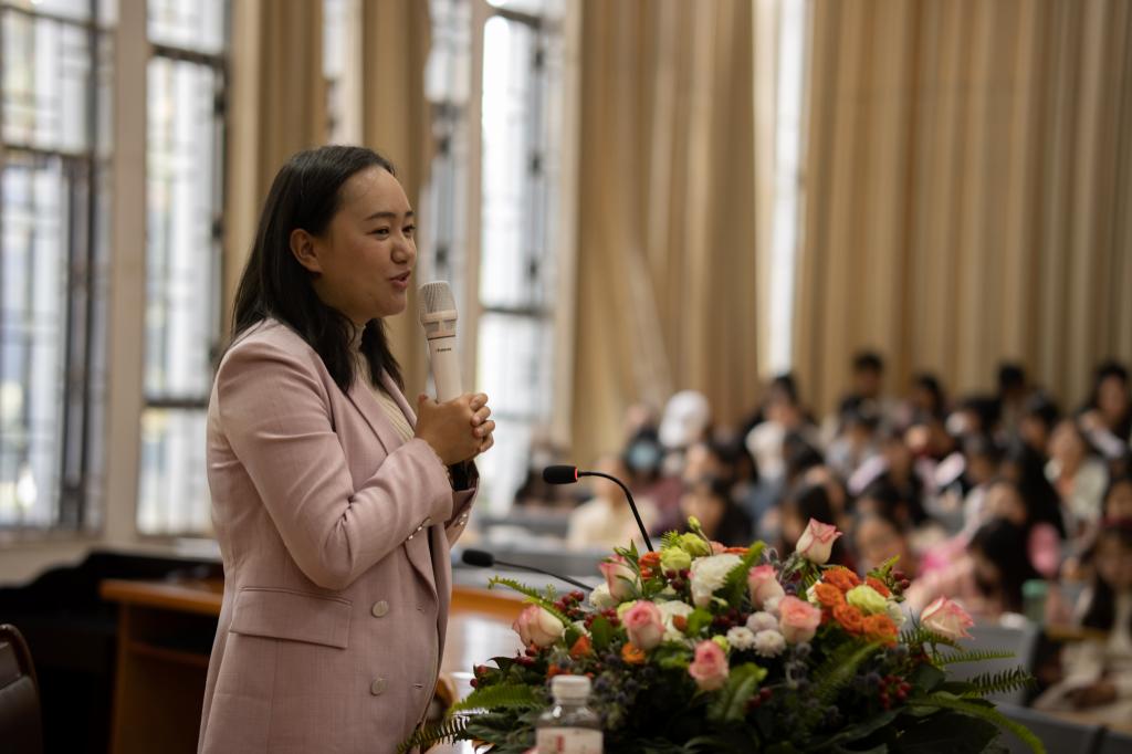在何永群介绍完之后,在场的同学也向这位传奇学姐提了很多问题,何永群也亲切地一一向大家解答,杜敏菊老师则在何永群回答完后作了精彩的总结。至此,由何永群主讲的创新创业讲座顺利结束。