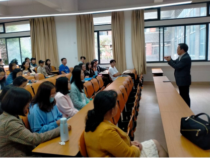 教学秘书赵振坤老师给同学提出读研期间整体规划建议,详细解说学分查询、自选课及实践课开展、论文开题、定稿、答辩与发表,以及学位外语考试等的具体事项。