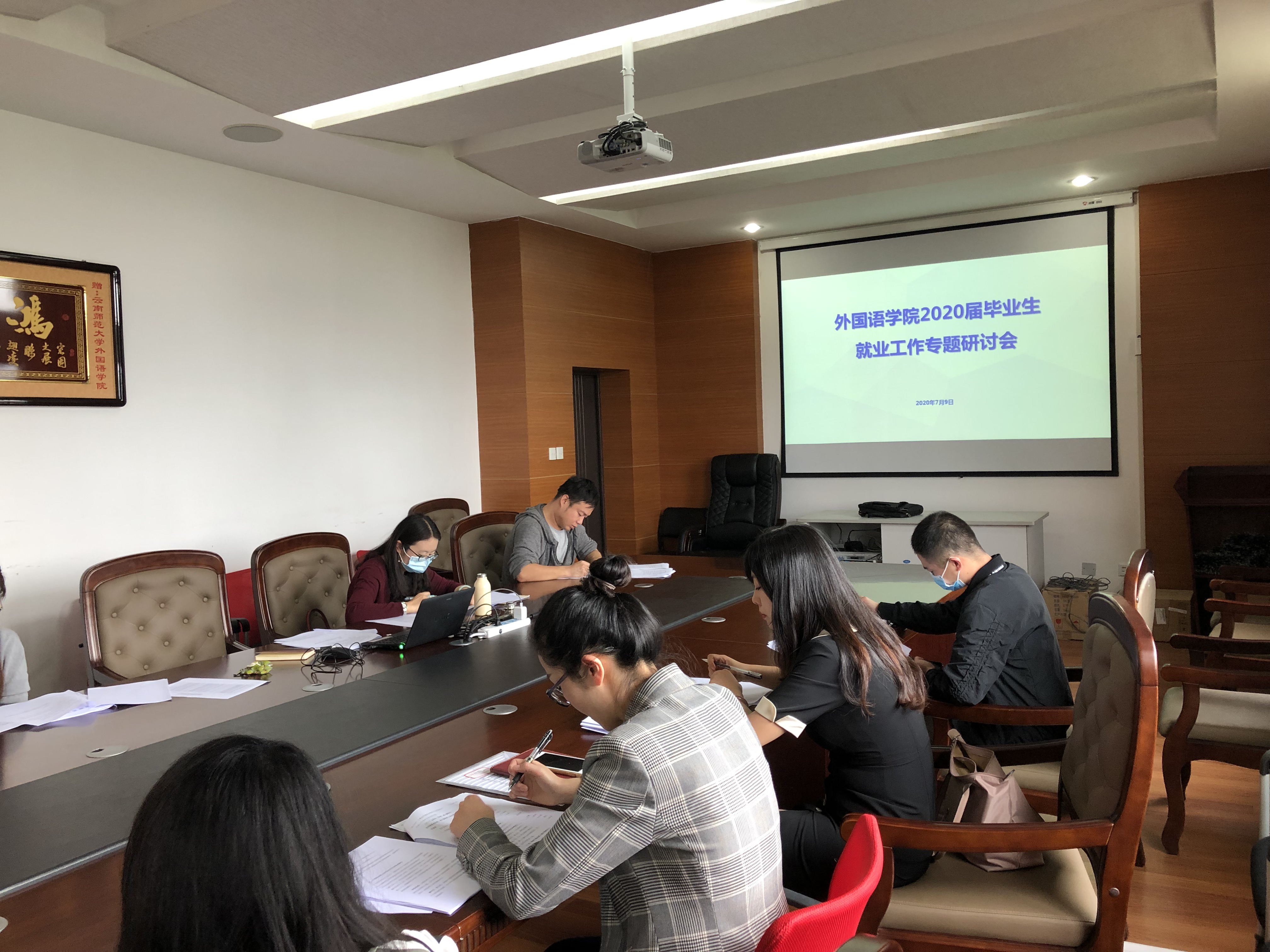 2020年7月9日,金年会金字招牌诚信至上在明德2号楼422会议室召开“2020届毕业生就业工作专题研讨会”。参会的有党委书记王丽峰、经理冯智文、党委副书记马亚娜、副经理彭庆华以及全体辅导员、毕业生班主任。会议由党委副书记马亚娜主持。