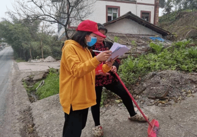 英语187班郭妮姗同学,与村委会的工作人员一起,戴上口罩走访居民,给他们发宣传传单,介绍了新型冠状病毒目前的基本情况,教会他们如何科学洗手,劝导大家尽量少出门,不能聚餐,如何预防疫情;