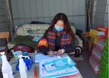 英语179班马莉娅同学,自愿参与所在村庄的劝返人员值班队伍。对进出村子的人员一一进行登记,包括姓名、村名、车牌号、出村时间、进村时间、电话号码、体温等等;