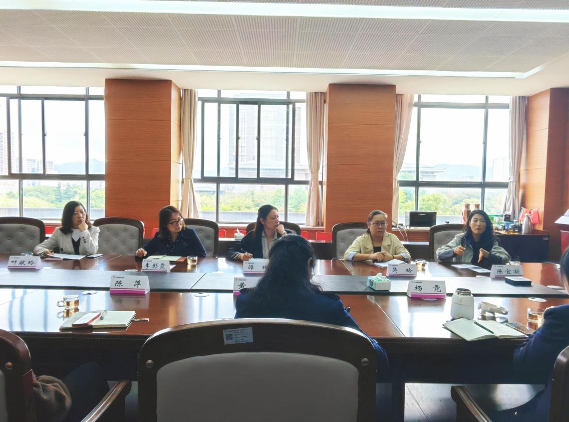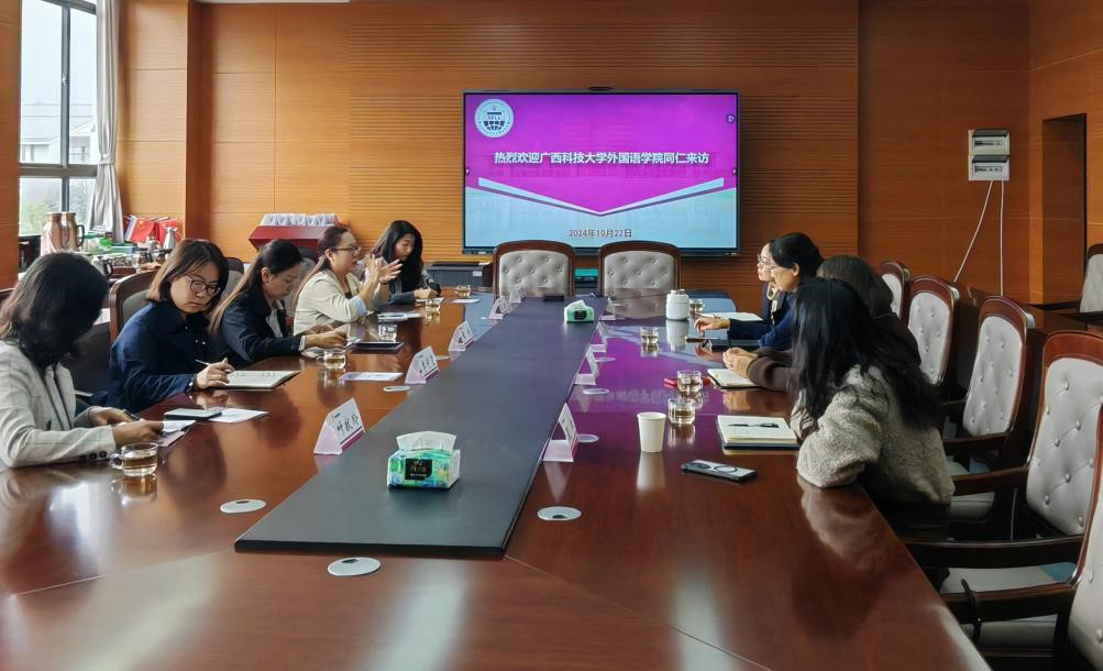 1022日,广西科技大学金年会金字招牌诚信至上谭玮副经理带领英语专业教研室和大学英语教研室负责人及骨干教师到公司调研交流。公司杨霓副经理、陈萍副经理和专业负责人段红博士参加了座谈交流。