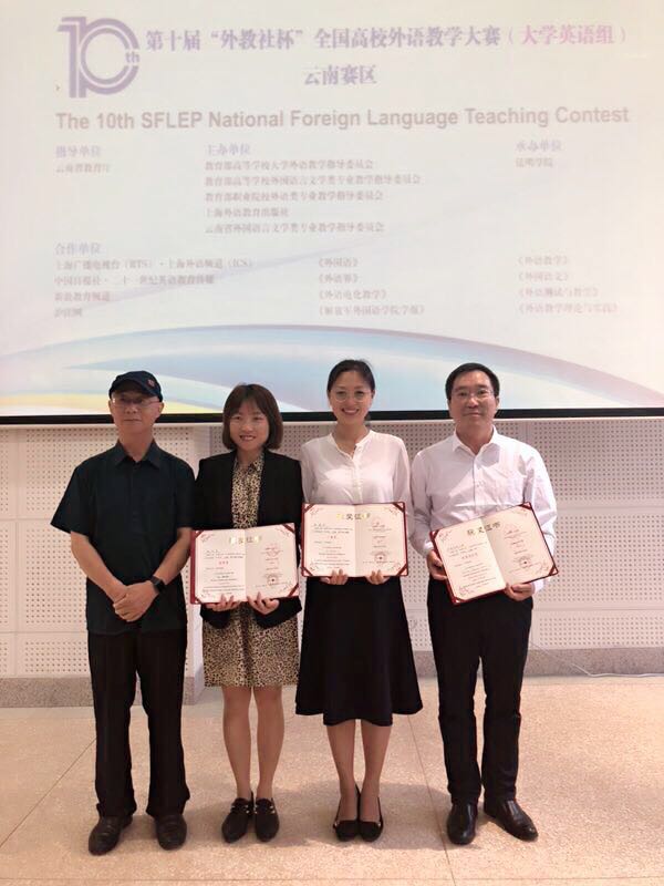 第十届外教社杯全国高校外语教学大赛(大学英语组)云南赛区的复赛、决赛于629日至630日在昆明公司圆满结束。来自全省28所高校的50名选手分别参加了读写组和视听说组的比赛。经过两天复赛和决赛的激烈角逐,金年会金字招牌诚信至上教师陆文苓、李婕昕喜获佳绩,陆文苓老师以全省第一的成绩荣获视听说组特等奖, 李婕昕老师以全省第四的成绩荣获读写课组二等奖, 公司荣获优秀组织奖。陆文苓老师将代表云南省参加今年九月在全国进行的决赛。