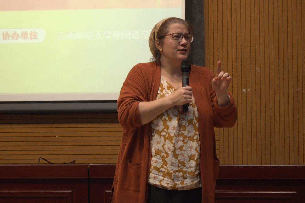 在赛后的点评环节,提问嘉宾兼评委Caroline Ann Johnson希望所有同学在提升口语能力时要“Just keep going!”(坚持不懈),勇于表达自己。斩获2023年度“21世纪杯”演讲比赛国赛二等奖的邓颖川同学也来到现场与选手和观众们分享了自己参加演讲比赛的过程、趣事,以及提高演讲技能的心得。
