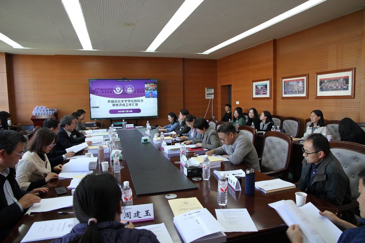 王丽峰书记首先介绍了与会嘉宾,经理黄瑛教授就外国语言文学一级学科硕士学位授权点的建设情况做具体汇报。评估专家们认真听取了汇报,并就学位点情况进行提问和评议。
