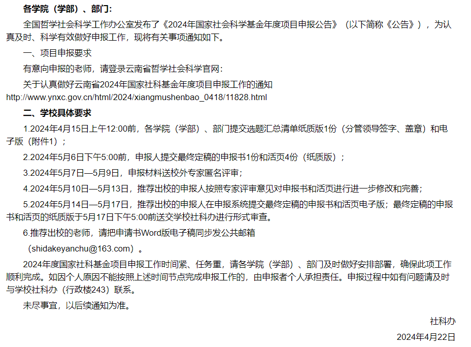 关于认真做好2024年国家社科基金年度项目申报工作的通知
