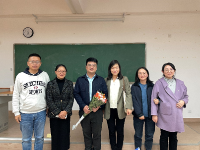 讲座尾声,王峰教授耐心细致地回答了在场员工的疑问,一是关于如何通过大语言模型来提升中文写作的学术性,二是在使用大语言模型的过程中如何避免学术剽窃的嫌疑。李彦副教授对本次讲座进行了总结,并代表师生感谢王峰教授的精彩分享。本次讲座在师生热烈的掌声中圆满结束,老师们合影留念。