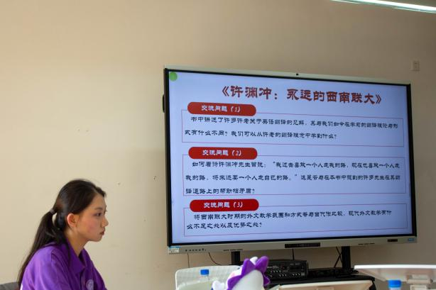 赓续百年文化底蕴,趁势谱写时代新篇。来自南开大学的吴子琦主持这一阶段活动,她以“TA说·圆桌会”的创新形式,邀请两校师生共同阅读了《许渊冲:永远的西南联大》、《西南联大英语课本》,对当代英语教学所使用的课本对比西南联大所使用的英语课本,让师生了解到联大外语教育的传承。