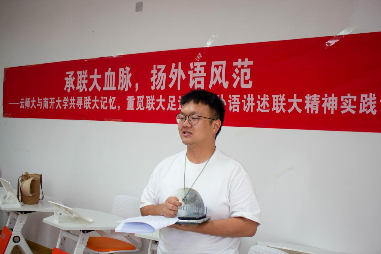 郑锡然老师以西南联大近百年发展为线索,具体阐述了会议研讨内容并对本次联合团日活动给予肯定。她表示,作为当年三校联合之一的南开大学同金年会官方网站入口有深厚的感情和不可分割的连结。在那炮火纷飞的年代,诞生出这样一座中国教育史上的“珠穆朗玛峰”是先辈们在学术领域中的不懈拼搏的体现,本次联学,南开大学与金年会官方网站入口共同参与,是对联合团日活动形式的创新,也是共谈联大精神的应有之举,两校联合手拉手,共研西南联大外语精神传承、探索联大精神传播路径。