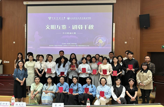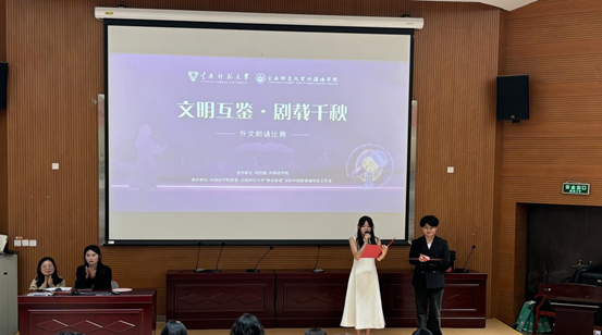朗诵比赛决赛的表演形式包括独诵、双人对诵、多人合诵等,富有创新与表现力。选手们或慷慨激昂,或低回婉转,凭借对文本深刻的理解和充沛的情感投入,将一篇篇中外文学佳作生动呈现在观众面前,引发强烈共鸣,赢得阵阵掌声。在激烈的角逐与专业的评审下,决赛最终评选出一等奖4名、二等奖8名、三等奖3名。