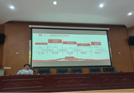 党委委员邱甲骏同志向入党积极分子解读《中国共产党普通高等公司基层组织工作条例》。