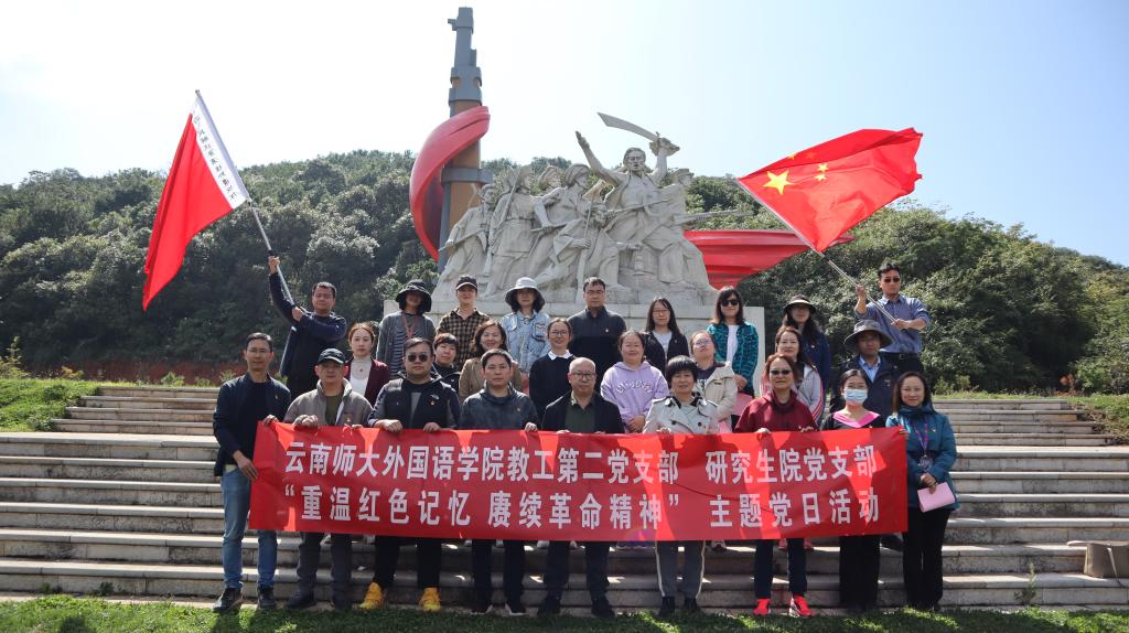 为深入学习贯彻习近平新时代中国特色社会主义思想,进一步提高政治站位,弘扬爱国主义光荣传统,结合公司主题党日的相关要求,10月23日金年会金字招牌诚信至上教工第二党支部、研究生公司党支部全体党员,前往石林圭山开展“重温红色记忆,赓续革命精神”的主题党日活动。