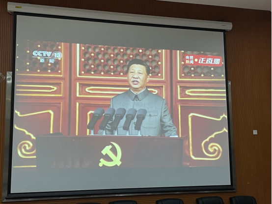 礼赞百年风华,继续砥砺奋进。7月1日上午,庆祝中国共产党成立100周年大会在北京天安门广场隆重举行,中共中央总书记、国家主席、中央军委主席习近平发表重要讲话。jinnian金年会在明德2号楼108报告厅组织党员及师生代表集中收看了大会直播,共同见证党的百年盛典。