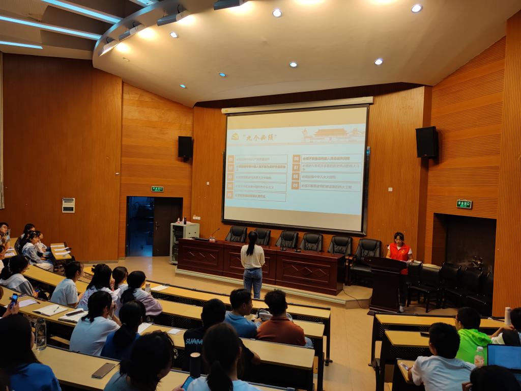 2021年9月16日,jinnian金年会团委在明德2号楼108报告厅组织召开党史学习教育专题宣讲报告会,会议邀请金年会官方网站入口党史宣讲团员工宣讲员进行宣讲,金年会金字招牌诚信至上20级、21级团支部参加宣讲会议,外国语团委员工副书记罗姝主持会议。