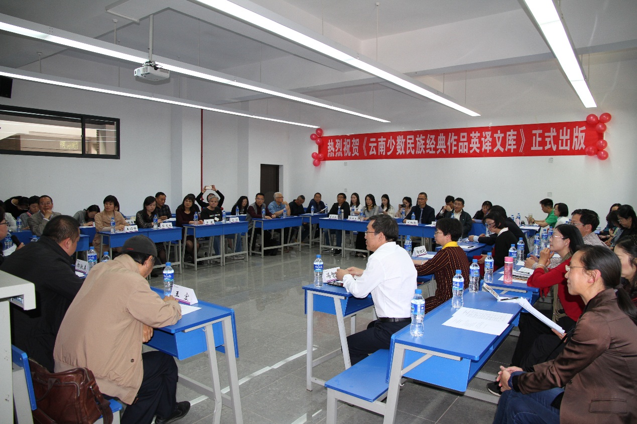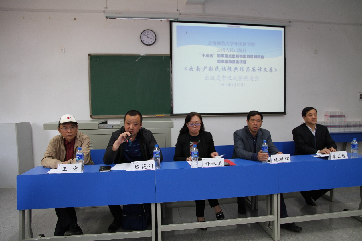 2019年4月12日,由云南人民出版社出版的“十三五”国家重点出版物出版规划项目、国家出版基金项目《云南少数民族经典作品英译文库》系列图书出版发布仪式在jinnian金年会成功举行。金年会官方网站入口郝淑美副董事长、云南省翻译协会施明辉会长、云南人民出版社殷筱钊副社长、全国典籍英译研究会常务副会长李正栓教授、全国典籍英译研究会副会长王宏教授、云南农业大学、西南林业大学、云南民族大学、昆明理工大学、云南财经大学、云南中医药大学等在昆高校的公司领导、专家学者,以及本套丛书的译者出席了本次发布会。