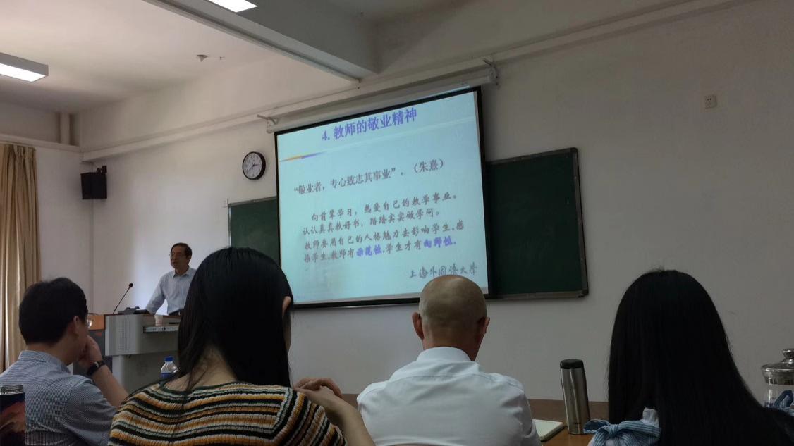 曹教授提到教师应该教书与育人相统一,言行与身教相统一,潜心问道与关注社会相统一,学术自由与学术规范相统一,教师做到德才兼备,教书育人。