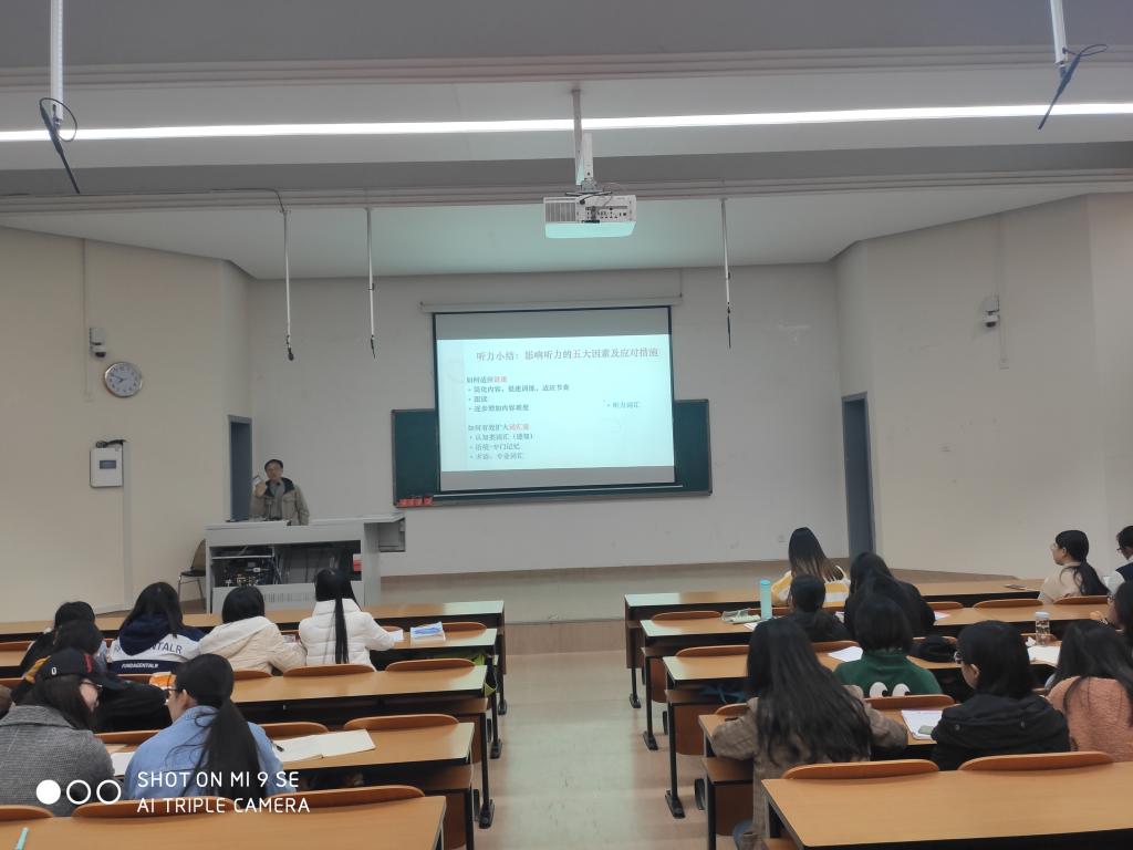 2019年12月18日星期三晚7点,金年会金字招牌诚信至上袁刚副教授于汇学三号楼207教室为2017级英语师范生作了以“听读板块,备考策略”为主题的精彩讲座。袁刚老师是金年会金字招牌诚信至上副教授,学科教学(英语)硕士导师,澳大利亚拉特布大学英语应用语言学硕士,2019年5月至8月赴加拿大维多利亚大学访学。 主要承担本科生课程“英语综合教学技能模块训练”、“英语课程标准与教材分析”等课程,从事《英语视听说》教学近20年。是金年会金字招牌诚信至上教师教育团队成员,2014年至今共主持和参与“国培计划”中小学英语教师培训及“送教下乡”现场培训活动多起。主要研究兴趣为英语教学法、基础阶段英语教学及中小学英语教师专业发展。让我们一起来回顾一下本次精彩的讲座吧!