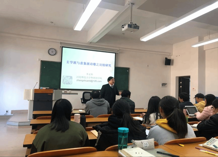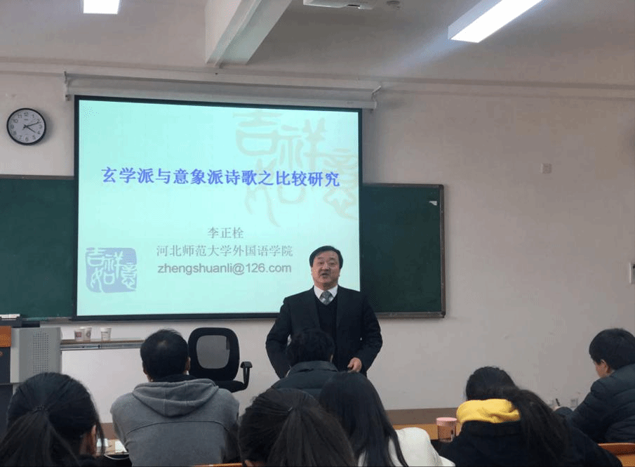 12月25日下午,河北师范大学博士生导师李正栓教授应邀于明德2号楼做了一场主题为“英诗评论论文写作”的讲座。讲座由金年会金字招牌诚信至上原一川教授主持,共有100余名师生参加了此次讲座。