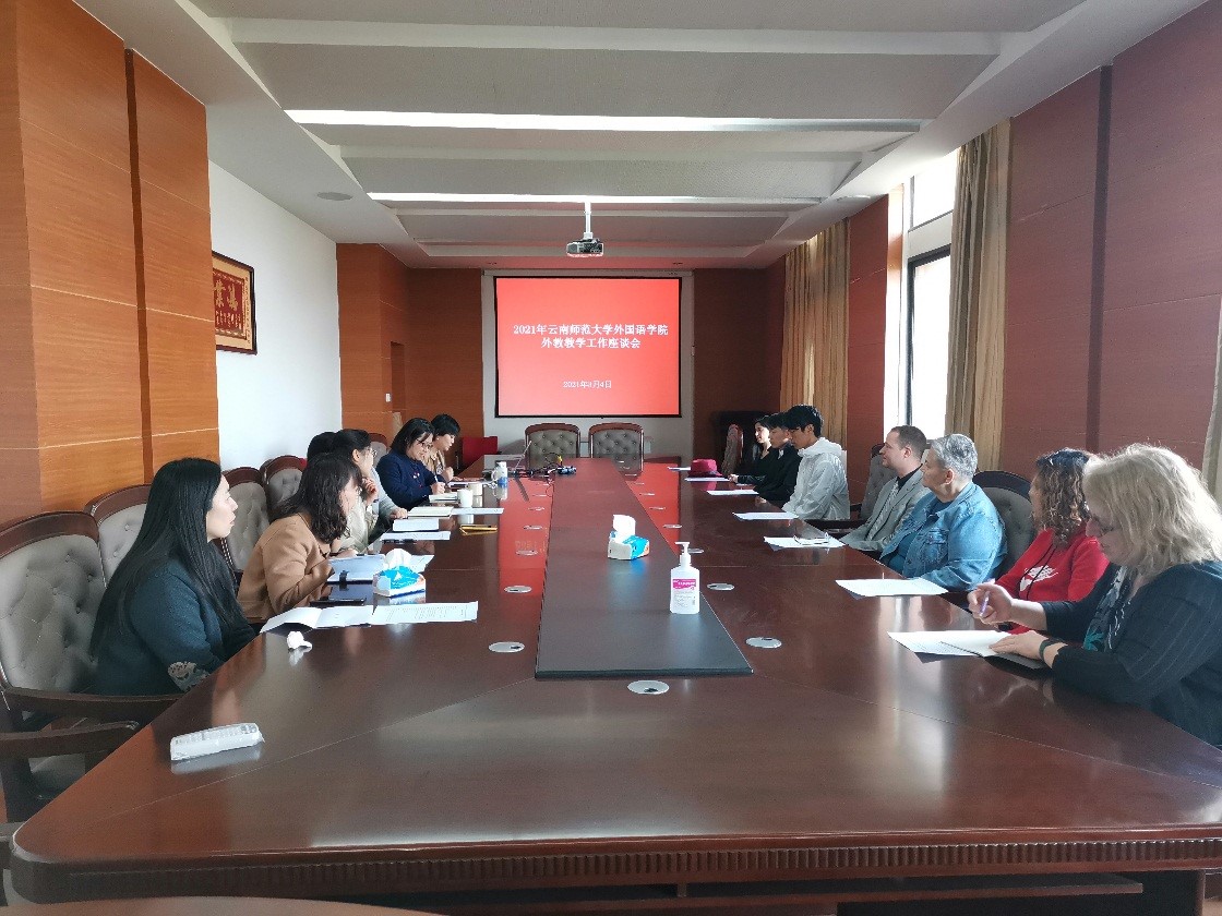 黄瑛处长首先欢迎各位外教出席此次座谈会,感谢各位外教对公司的付出与贡献。她就外专外教管理规定进行强调,特别是有关宗教相关管理规定。此外,黄处长还强调了疫情期间各位外教的人身财产安全,希望各位在云南师范老员工活愉快,工作顺利。王丽峰书记肯定了各位外教对公司本科教学作出的贡献。其次,她再次强调宗教相关管理规定,希望外教能严格遵守中国相关法律规定。最后,她也向各位外教强调了加强本科员工学习及管理的重要性。李艳副处长和孙颖科长就外教工作量调整、工资发放时间、车旅报销等具体事项进行解释。外教们也针对教员工活中的困难和需求进行交流。座谈会在轻松愉快的氛围中结束。