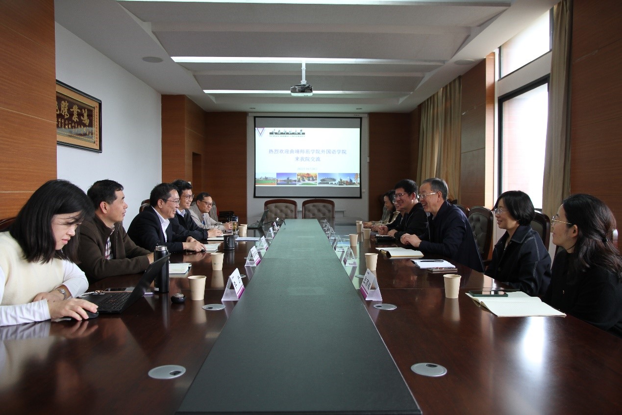 10月28日上午,曲靖师范公司金年会金字招牌诚信至上经理宋发富、副经理高云柱、办公室主任杨小华、英语系主任马苏妮等一行6人到公司开展调研交流活动。公司经理冯智文、副经理杨叶华、办公室主任邱甲骏、高年级教研室副主任袁刚、学位点负责人李彦参加座谈。