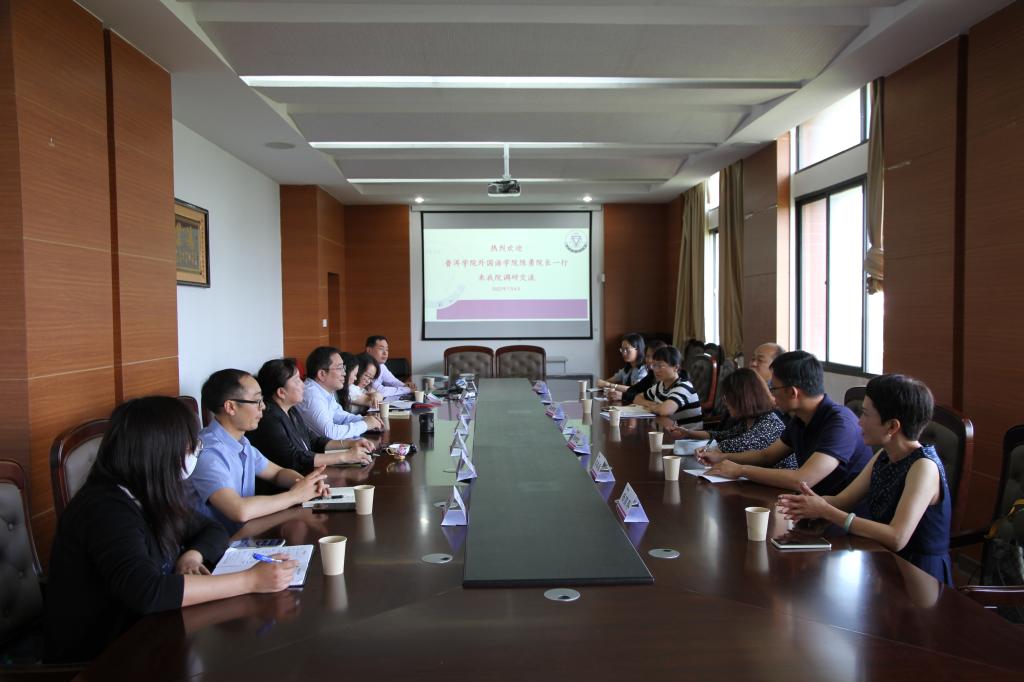 7月6日上午,普洱公司金年会金字招牌诚信至上经理陈勇、副经理柴树虹、英语专业负责人廖新丽、教务科科长李本福、办公室主任徐微、英语系主任胡蓉、教师杨丽萍、教师彭俊瑜一行8人到公司开展调研和交流活动。公司经理冯智文、副经理杨燕、英语专业负责人段红、高年级教研室主任陈萍、基础教研室主任杨章辉、教务办主任董晓燕、办公室主任邱甲骏参加了座谈,由杨燕副经理主持。