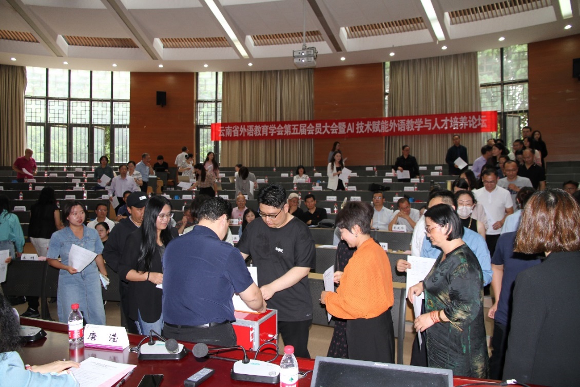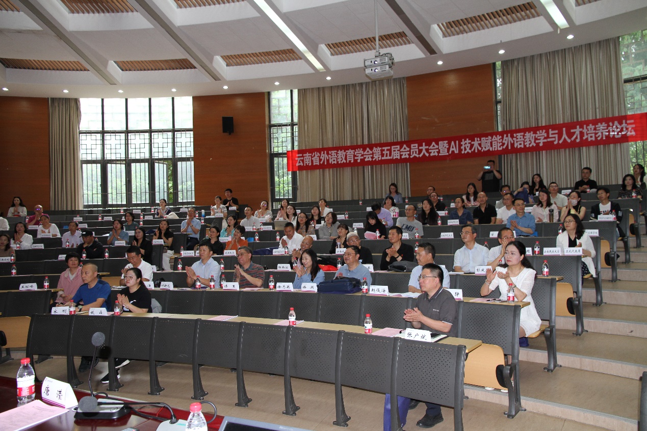 6月7日,云南省外语教育学会第五届会员大会暨“AI技术赋能外语教学与人才培养论坛”在金年会官方网站入口举行。本次大会由云南省外语教育学会、云南高校外语教学研究会和云南省翻译工作者协会共同主办,jinnian金年会承办,外语教学与研究出版社、科大讯飞股份有限公司和云南智泉翻译有限公司提供支持。云南省民政厅社会组织管理局、云南省社会科学界联合会学会部、金年会官方网站入口社科办、金年会官方网站入口公司领导出席了会议。来自全省各大中专院校70多个理事单位代表、中小学名师代表及企业界100多人参加了大会。