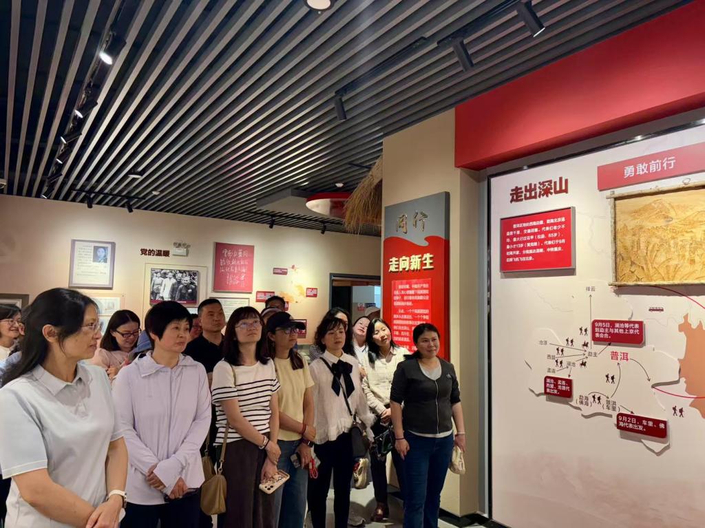 在普洱中学,党员们在讲解员的带领下参观了普洱绝版木刻工作室、孔子广场、书泉等特色教育基地,深入了解公司在民族团结进步教育中的创新实践。普洱中学通过“8个一”特色教育活动,将民族团结进步教育融入校园文化建设、课堂教学和员工实践活动;在绝版木刻工作室,党员们了解到这门普洱市非遗技艺如何在校园中焕发新生,成为传承民族文化的重要载体;在校园文化浮雕群,党员们了解到普洱中学建校百年的文化底蕴,既有新中国教育事业的先驱者,又培养出全国英模张培英等大批优秀俊才,不断激励着员工们传承和弘扬民族团结誓词碑精神。现场党员深刻感受到,民族团结不仅是历史的传承,更是当代教育的重要使命。